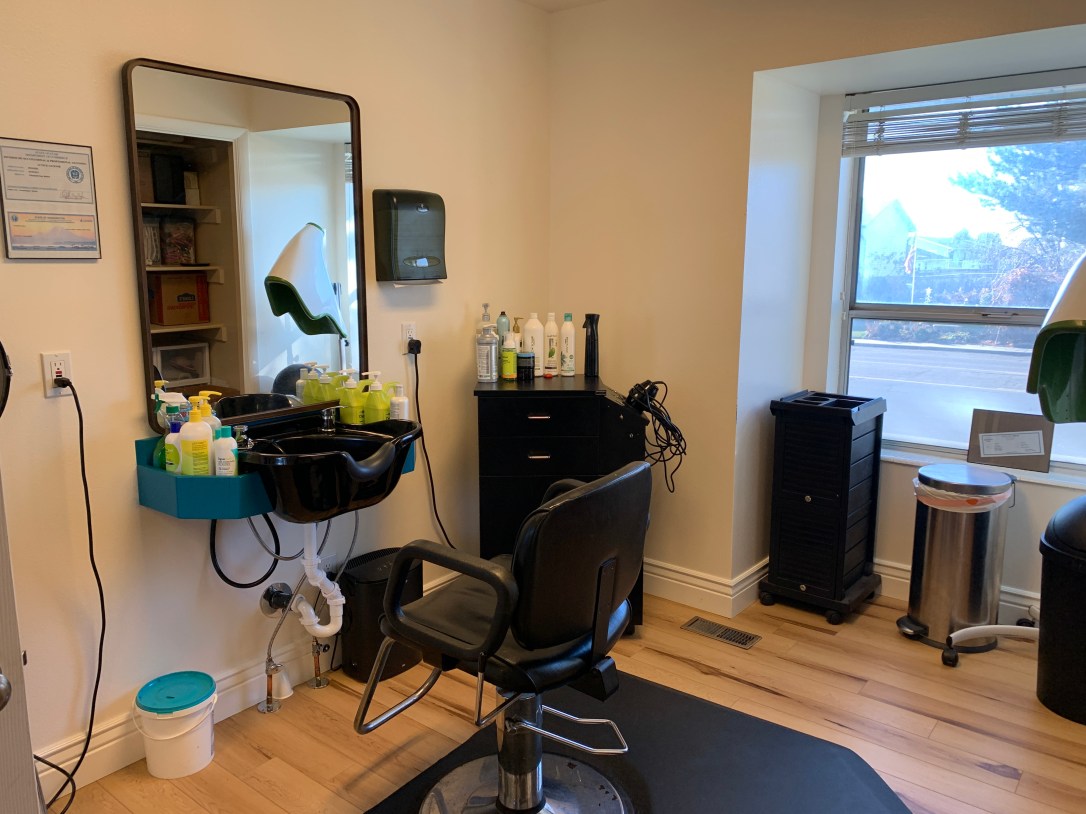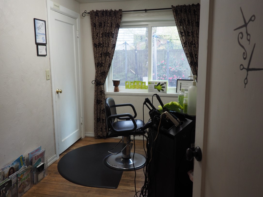 Since the salon is in my home you will most likely be greeted by Violet, our dog. She will bark at you and she can look very scary, but she calms down once you are in the salon. If you are nervous about her, call me from the door, I will come get her.