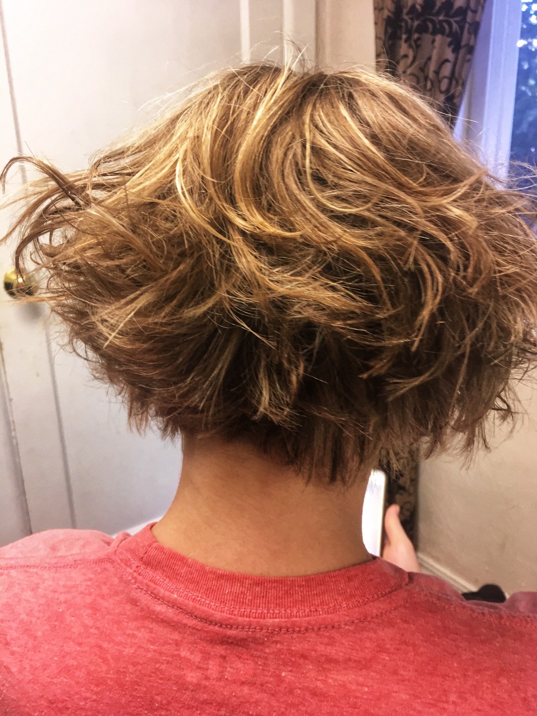 After having her hair permed for the last 2 years, Daphne wanted to see what her natural hair texture was like. We did the big chop to a cute bob.