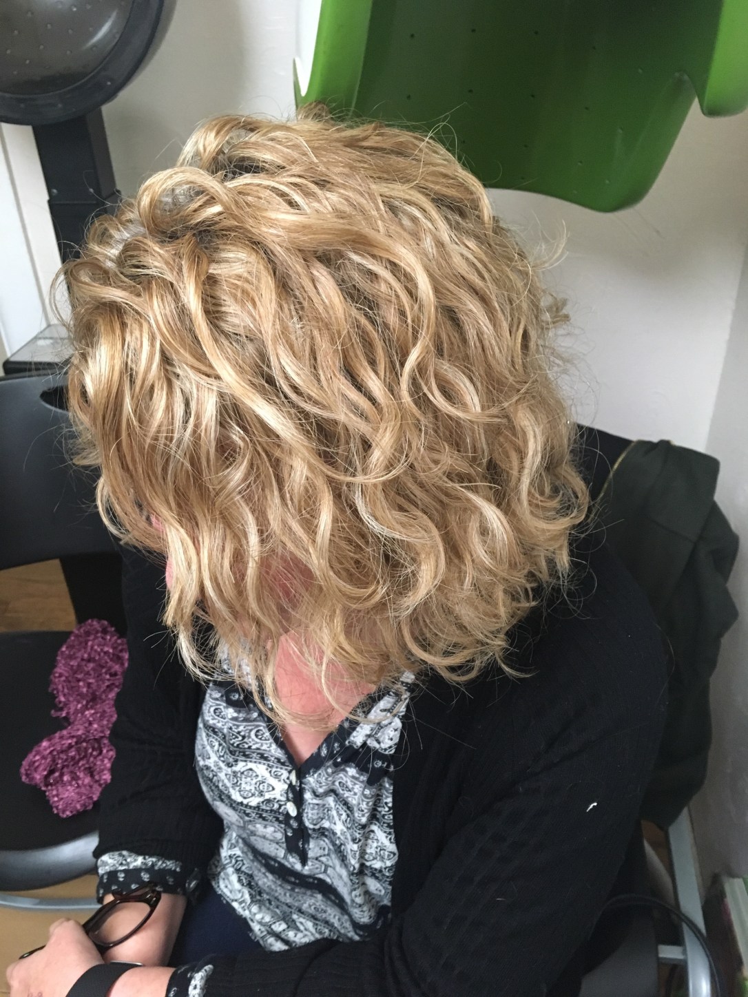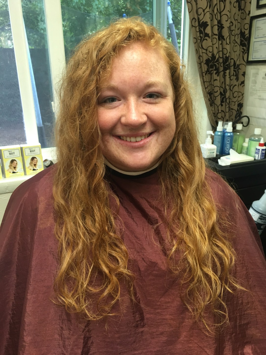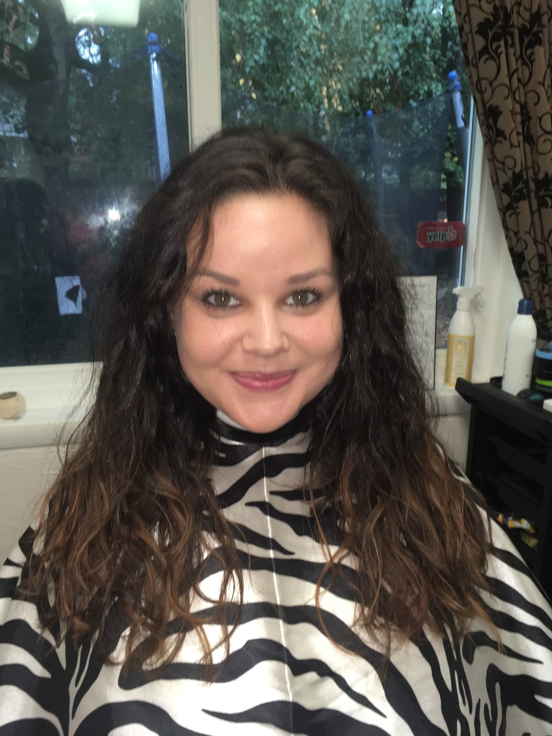 Not only did she get s fabulous cut, but she also got some hands on training using the DevaCurl products.