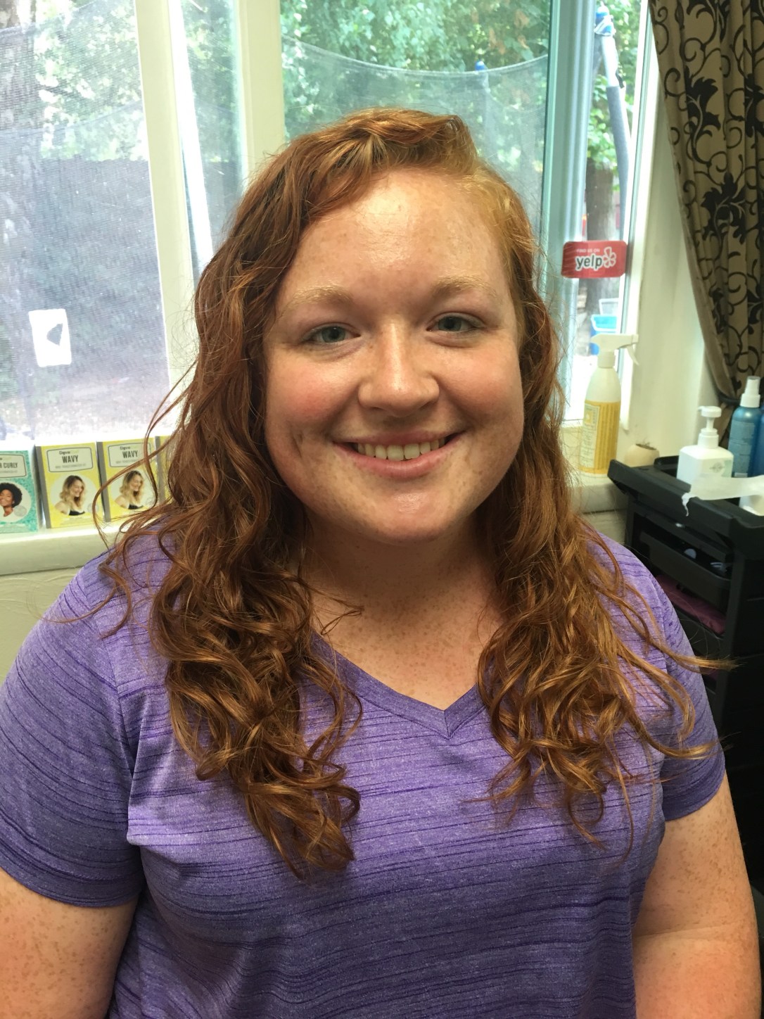 Casey had been wanting to try a Deva Cut but there are not many options in Nebraska where she lives. So, when she had the chance to join her husband on a business trip to Seattle she took the opportunity to get her hair cut.