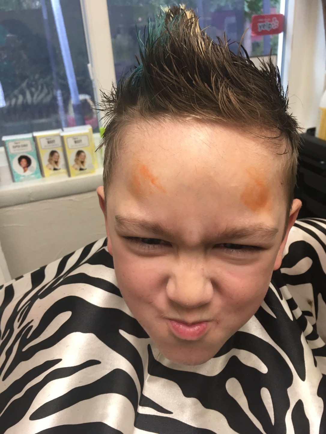 (I have no idea why he had orange marker on his face.)